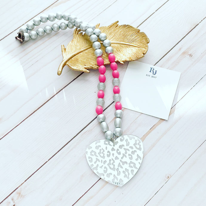 Silver Leopard Heart Necklace